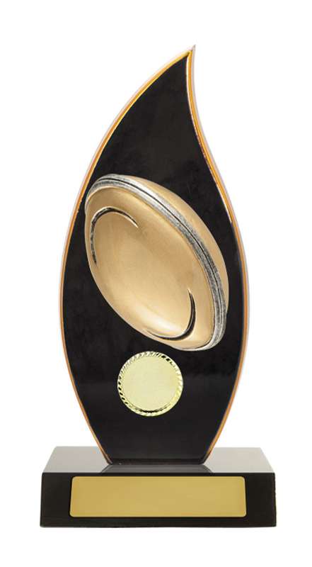 Rugby Shazam Trophy Series showcases a realistic player – for League or Union – with excellent detail and is completed in classic trophy gold colours. With 5 sizes, series of trophies perfect for your club or team award presentation. Consider for your various best player awards.